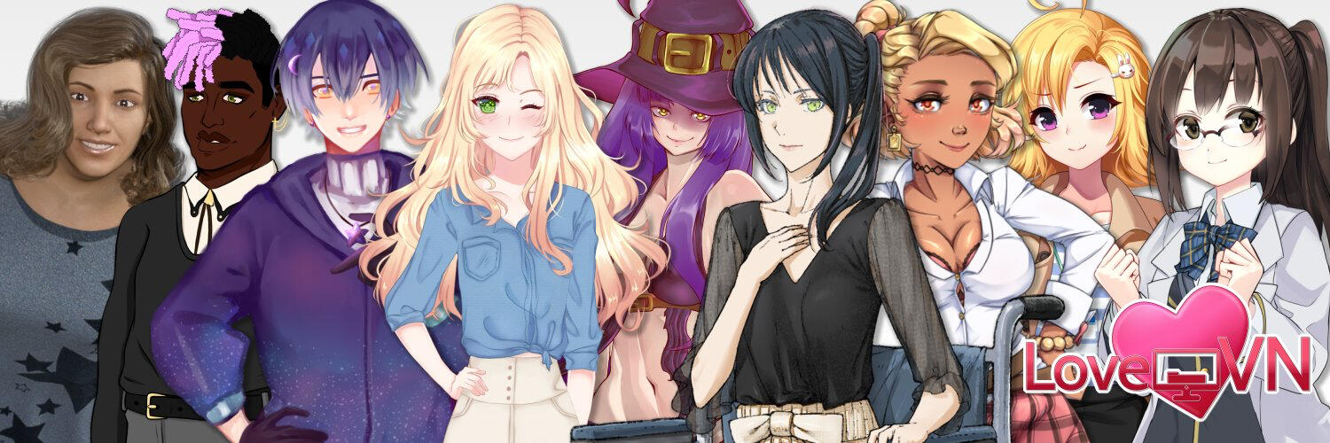 Thanks a ton to the LoveVN team for featuring Yoshimi in their December Twitter banner! LoveVN is a community of visual novel developers and visual novel lovers looking to share work and help out others. If you'd like to learn more about them, check out their Twitter page or visit their Discord server. It's a great community!