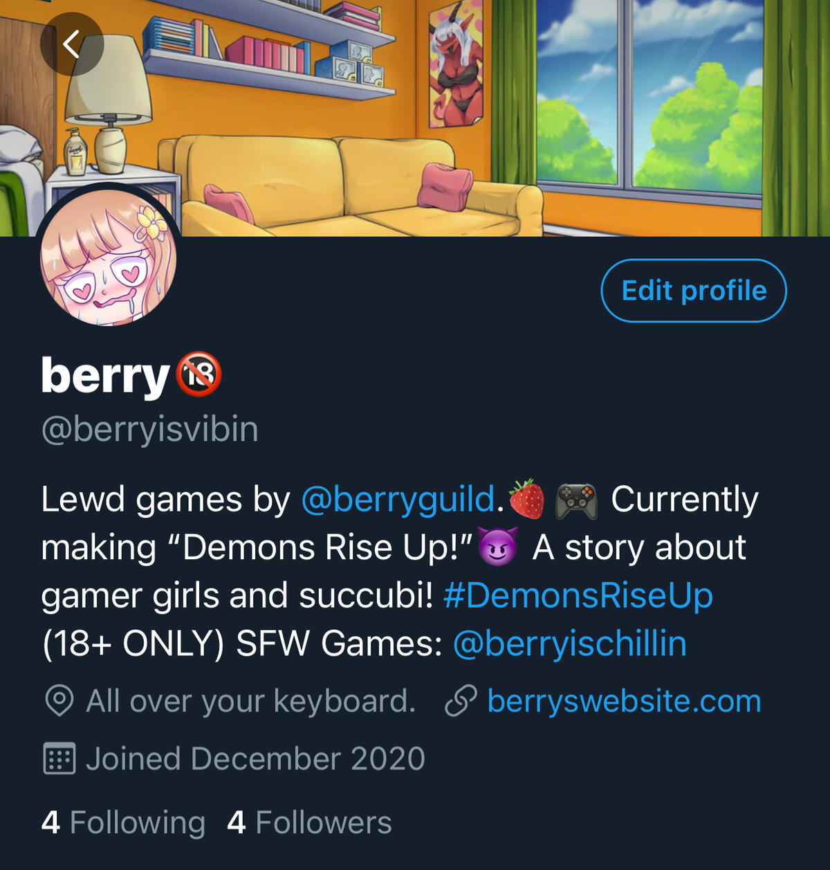 I've also started a new Twitter account where this (and any future) NSFW works I make will be posted. You can follow me at @berryisvibin to keep up with the development process (18+ only)!